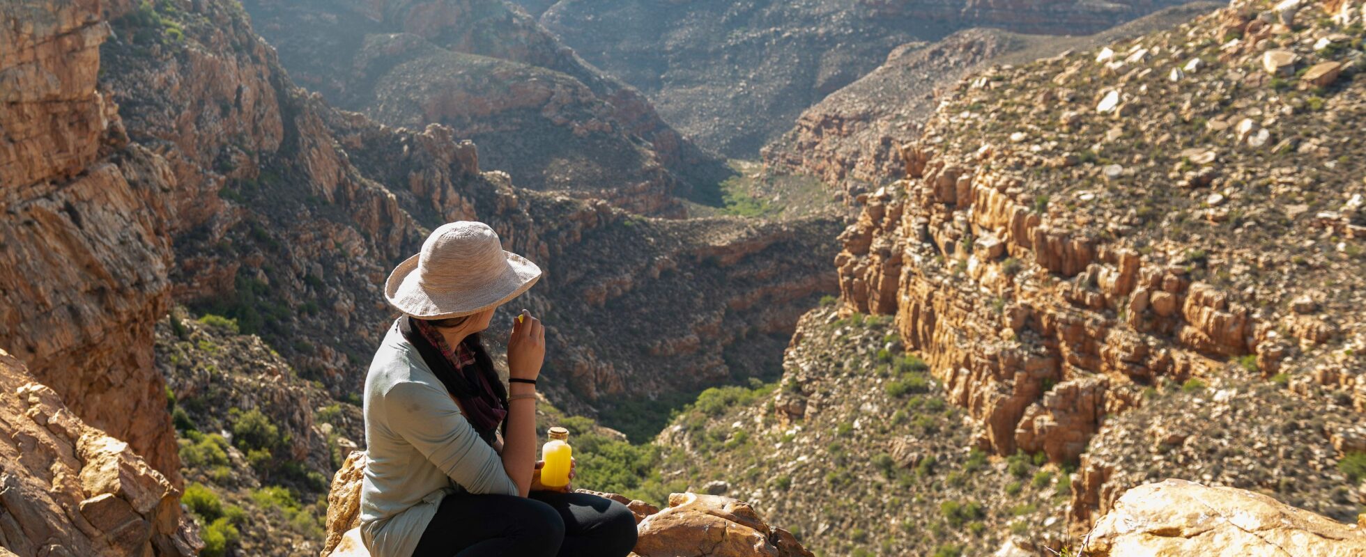 Partez pour une belle randonnée en fin de journée jusqu’au spectaculaire point de vue du canyon de Rietrivier, où vous pourrez savourer un apéritif inoubliable au coucher du soleil. Au départ de la Mount Ceder Guest House (réservation préalable requise), ce sentier facile et familial vous conduit en 30 minutes seulement au point de vue et est récompensé d’une vue imprenable sur le Cederberg alors que le soleil disparaît derrière les montagnes. Sirotez une boisson fraîche et dégustez une collation légère tout en profitant de la lumière dorée du coucher de soleil. Une fois le soleil couché, restez dans les environs pour profiter de l’un des meilleurs sites d’observation des étoiles d’Afrique du Sud. L’expérience complète, comprenant l’apéritif au coucher du soleil et l’observation des étoiles, peut durer jusqu’à 3 heures.