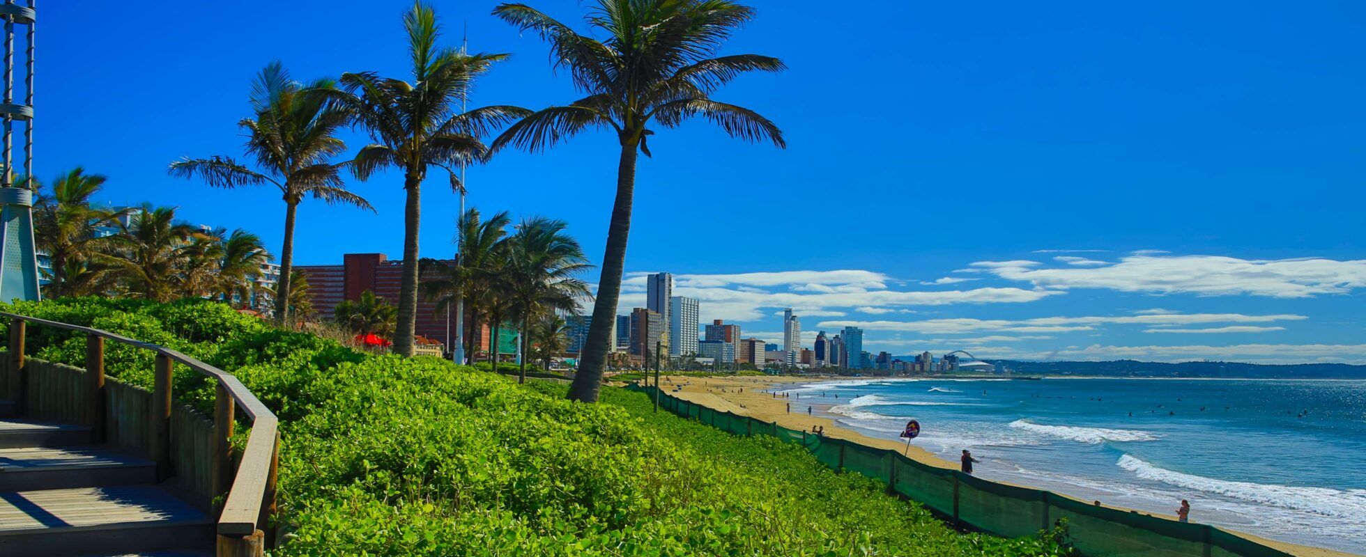 Durban, située le long de l’océan Indien, est à la fois un port animé et une ville balnéaire décontractée avec un climat subtropical chaud. Même si Durban est votre dernière escale, elle laissera une impression durable. Dirigez-vous vers la célèbre Golden Mile pour six kilomètres de bonheur en bord de mer, grouillant de surfeurs et de bars de plage – et profitez d’une balade en rickshaw (pousse-pousse) pour une touche locale amusante. Ne ratez pas l’uShaka Marine World – l’un des plus grands aquariums du monde – ou le dynamique marché de Victoria Street, rempli d’épices colorées et de nourriture de rue. Avec la plus grande population indienne en dehors de l’Inde, Durban est le meilleur endroit pour essayer le véritable bunny chow et le curry de Durban épicé. Les amateurs de sport peuvent visiter l’emblématique stade Moses Mabhida ; prenez le SkyCar ou osez la marche d’aventure pour des vues panoramiques sur la ville.