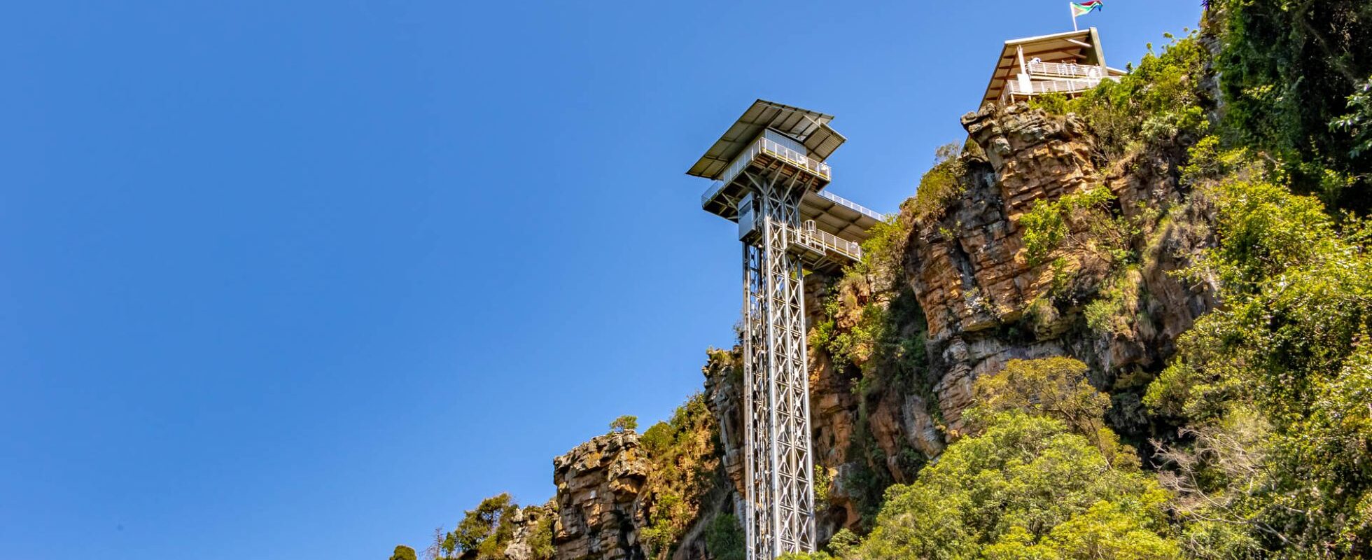 Idéalement situé le long de l’emblématique route Panorama, juste à l’extérieur de Graskop sur la R533 vers Hazyview, le Graskop Gorge Lift est un ascenseur de verre qui plonge à 51 mètres au cœur d’une ancienne forêt afro-montagnarde, offrant des vues panoramiques sur l’escarpement de Drakensberg tandis que vous glissez vers le contrebas. Une fois en bas, suivez le sentier forestier guidé de 600 mètres, traversant des ponts, rivières et quelques cascades dans un cadre tranquille et luxuriant. Le site offre également une tyrolienne, des balades en bord de falaise et la légendaire balançoire géante pour ceux en recherche de sensations fortes. Réserver à l’avance est fortement recommandé !