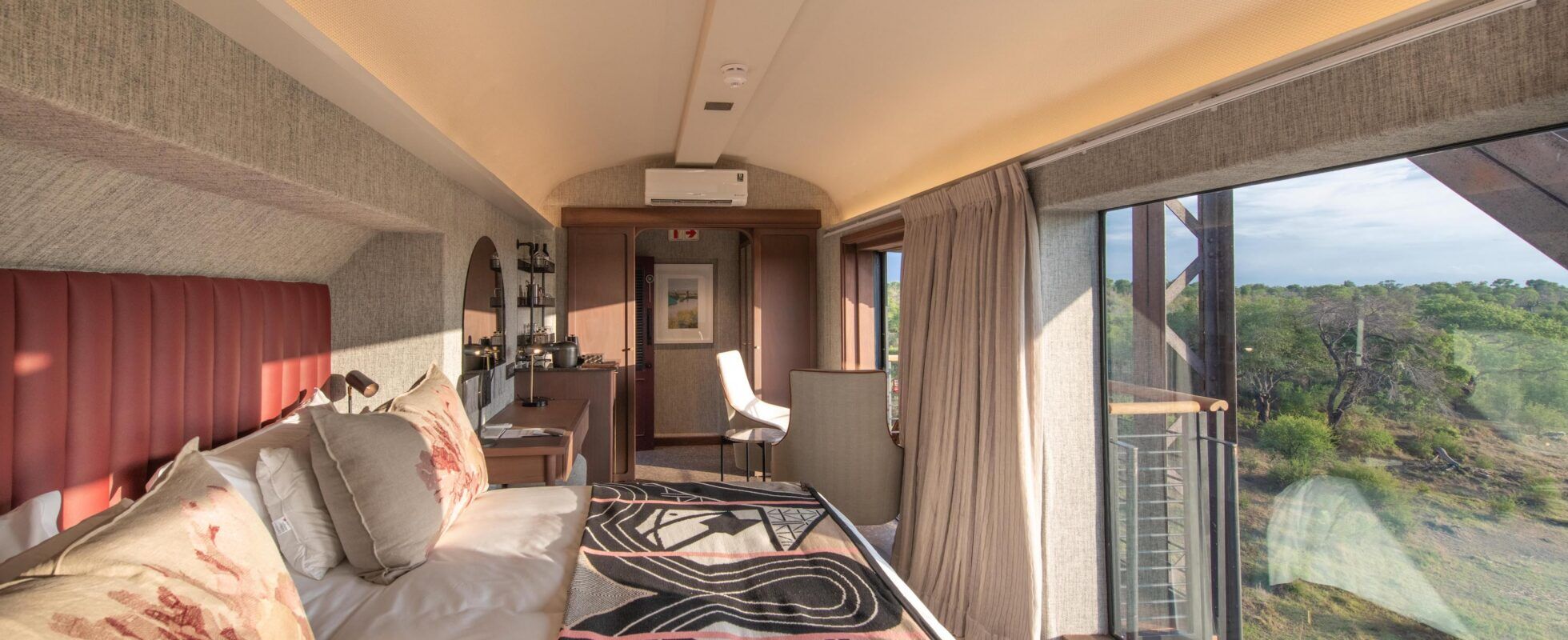 Installé de manière permanente sur le pont historique de Selati, au dessus de la rivière Sabie, Kruger Shalati offre des hébergements de luxe uniques dans et autour d’un train réhabilité qui rend hommage aux voyageurs qui ont exploré le parc il y a une centaine d’années. Le train porte le nom de Shalati,l’une des premières cheffes guerrières de la tribu Tsonga. Les 7 suites Bridge House surplombent la rivière et l’emblématique « train sur le pont », et sont dotées de lits super-king et de salles de bains avec douche et baignoire, toilettes séparées, peignoirs et chaussons. Les autres équipements comprennent un mini-bar bien fourni, de quoi faire du thé et du café, le Wi-Fi et la climatisation. Deux piscines donnent sur la majestueuse rivière Sabie, attirant les animaux et les oiseaux pour étancher leur soif quotidiennement, et il y a un superbe spa ainsi qu’un excellent restaurant d’inspiration africaine.