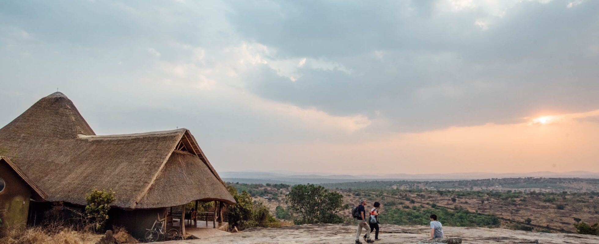 Le Rwakobo Rock Lodge est un charmant écolodge niché sur une colline rocheuse, juste à l’extérieur du parc national du lac Mburo. Le lodge propose des chambres confortables dans des cottages arrondis répartis sur le sommet de la colline, qui offrent une vue imprenable sur le parc. Ils se fondent dans le paysage naturel et sont dotés de services basiques tels que l’éclairage solaire, des toilettes à chasse d’eau et des douches à l’eau chauffées à l’énergie solaire. Les invités peuvent se détendre dans les environs tranquilles, prendre une boisson au bar ou encore se reposer près de la piscine creusée dans la roche. Le petit déjeuner et le dîner sont servis dans le restaurant et devinez le meilleur ? Vous pouvez observer les animaux près du point d’eau en contrebas, tandis que vous mangez: zèbres, phacochères, impalas et guibs harnachés s’y rassemblent souvent.