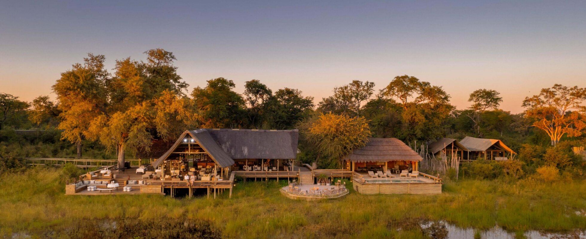 Sable Alley se trouve sur les rives d’un lagon couvert de nénuphars dans la réserve privée de Khwai (une concession faunique de 200 000 hectares bordant la réserve animalière de Moremi, dans l’est de l’Okavango), avec une vue imprenable sur les plaines inondables au-delà. Les 12 tentes (dix doubles et deux familiales) sont installées sur des terrasses en bois. Elles sont toutes équipées d’un grand lit, d’un coin salon intérieur et extérieur, et d’une salle de bains privative avec douche intérieure et extérieure (toutes alimentées à l’énergie solaire). La zone principale comprend un salon, un bar, un foyer et une piscine. Les repas sont servis en privé, ce qui vous évite les conversations embarrassantes à table si vous préférez éviter cela.