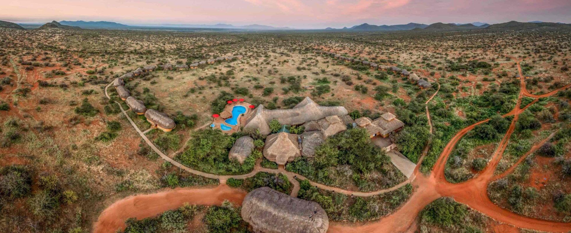 Avec ses jolies maisons traditionnelles et son approche écologique, le Samburu Sopa Lodge a pour vocation d’apporter une touche d’authenticité au tourisme. Ce lodge sait maintenir des normes de tourisme haut de gamme tout en soutenant le développement local, notamment en employant principalement des membres de la communauté locale. Ses 15 cottages traditionnels, décorés avec goût, disposent tous de deux chambres et d’une terrasse extérieure. Ils sont répartis autour de l’espace commun principal, qui comprend un restaurant, une réception et une piscine. De plus, il y a un point d’eau près du restaurant où les animaux viennent s’abreuver et se rafraîchir. Et comme le lodge est situé au sommet d’une colline, il offre une vue imprenable sur la réserve nationale du Samburu qui l’entoure. Un endroit extraordinaire pour admirer confortablement la faune kényane.