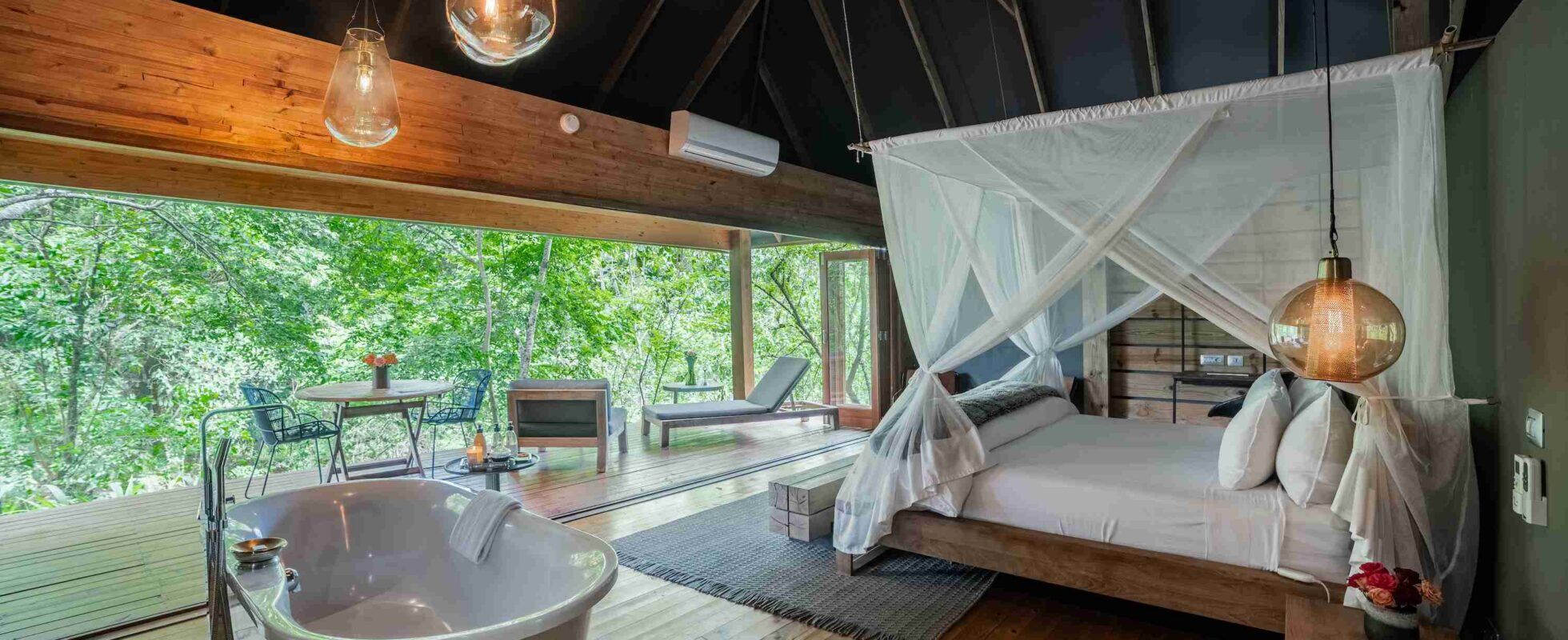 Le Summerfields Rose Retreat and Spa est un établissement 5 étoiles niché dans une plantation de macadamia au bord de la rivière Sabie, à seulement 18 kilomètres du parc national Kruger. Il propose des suites dotées d’une salle de bains attenante (avec douche extérieure et articles de toilette de luxe), d’une terrasse privée et d’autres équipements haut de gamme. Le petit-déjeuner, le déjeuner et le dîner sont préparés avec soin avec des légumes frais de saison, récoltés directement dans la pépinière biologique de l’établissement, et servis exclusivement aux clients de l’établissement. Après vos repas, laissez-vous tenter par un soin au spa au bord de la rivière ou profitez de la piscine. Une belle adresse pour une parenthèse luxueuse en pleine nature.