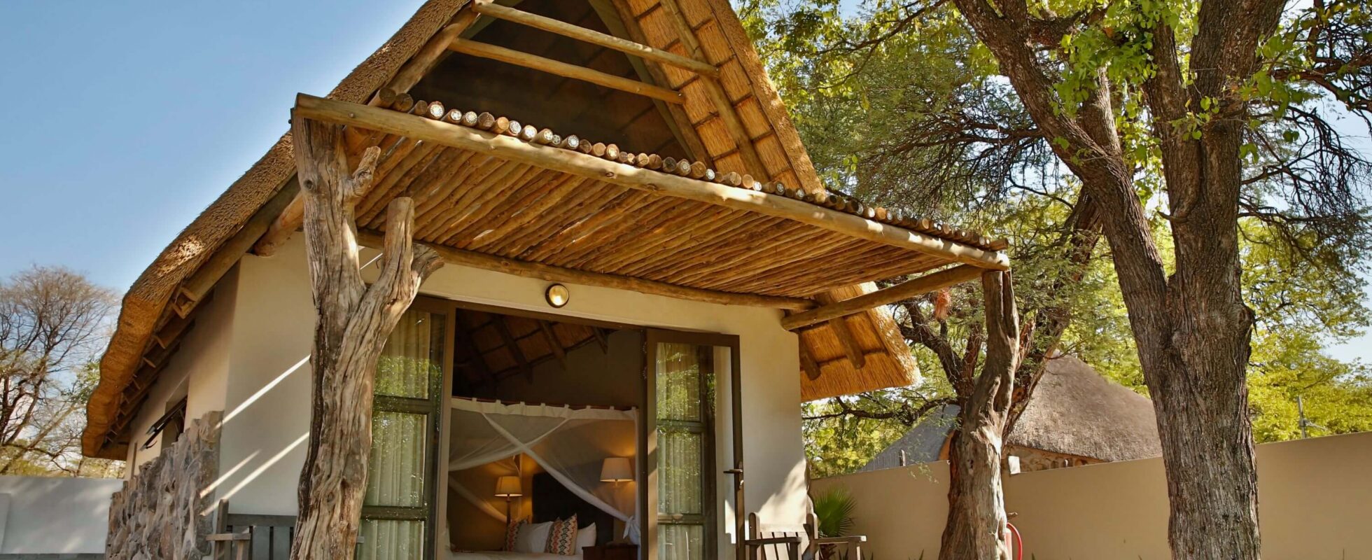 À seulement 19 kilomètres de l’aéroport international de Maun, sur la route menant à la réserve animalière de Moremi, le Thamalakane River Lodge propose des chalets en pierre et en chaume surplombant la rivière Thamalakane bordée de roseaux (gardez l’œil ouvert pour apercevoir les hippopotames !). Vous avez le choix entre 32 chalets pour deux personnes ou deux unités familiales, tous équipés d’une salle de bains privative, d’une douche et de moustiquaires pour éloigner les hôtes bourdonnants. Une piscine vous permet de vous rafraîchir, tandis que le restaurant sert des repas à la carte inspirés des ingrédients de saison. Les chalets et les espaces communs donnant sur l’eau, les soirées offrent une vue imprenable sur la rivière tandis que les oiseaux aquatiques s’installent pour la nuit.