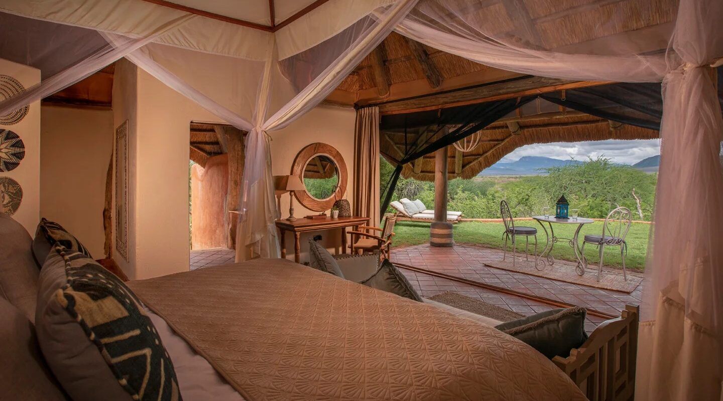 The Hildana Lodge est situé au pied de Taita Hills, niché dans une zone de conservation privée de 2 025 hectares. Cette propriété exclusive peut accueillir un maximum de 20 personnes. Les huit chambres luxueuses incluent une suite nuptiale, cinq chambres doubles et deux unités familiales, chacune dans des cottages indépendants situés le long d’un sentier sinueux qui vous mène à votre propre petit coin de nature sauvage kényane. Vous trouverez ici une intimité absolue.