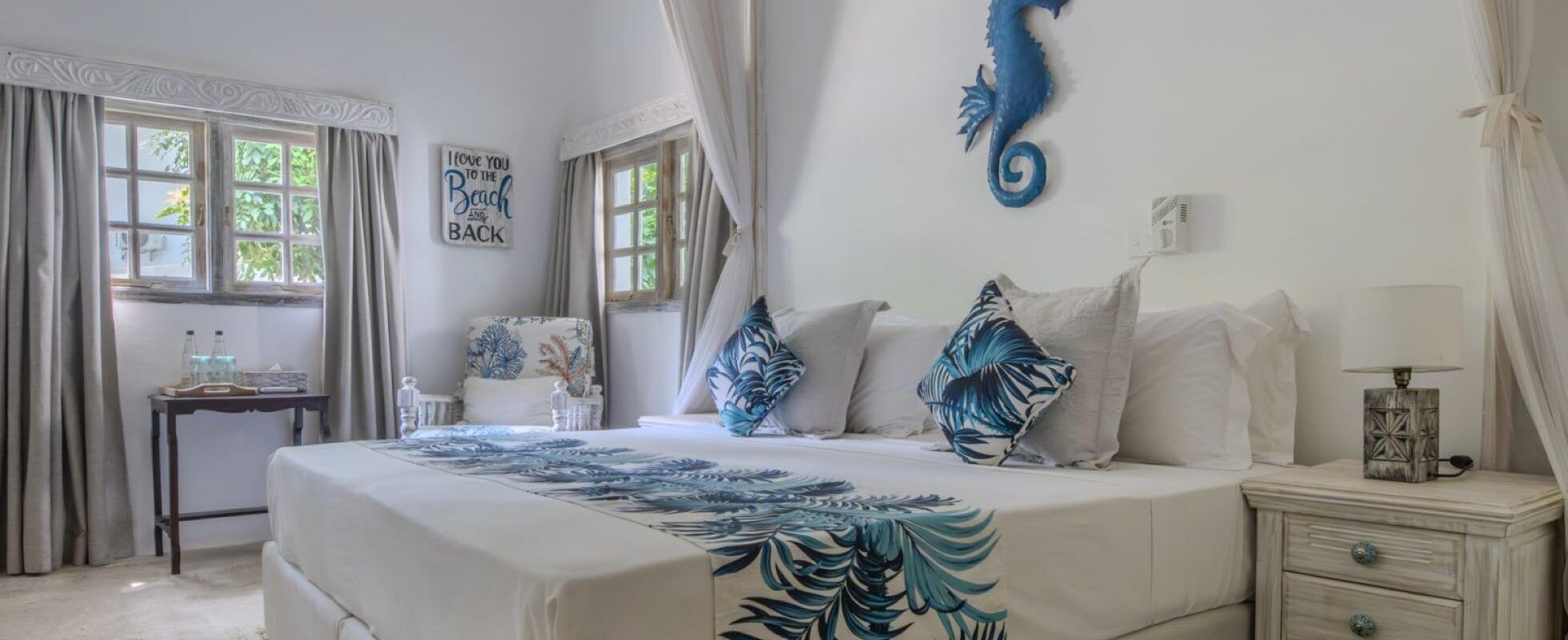 Le complexe se trouve sur la célèbre plage de Diani Beach, près de Mombasa, et dispose de neuf chambres de catégories différentes, bien équipées. Certaines disposent en outre d’un jacuzzi privé, de terrasses offrant des vues panoramiques et d’un salon spacieux. Les familles bénéficient de chambres spacieuses au rez-de-chaussée du bâtiment de style hacienda de l’hôtel, tandis que les couples jouissent d’une grande intimité dans les magnifiques cottages de plage. Ces cottages se trouvent à quelques pas de l’océan Indien et disposent d’un petit jardin où vous pourrez vous détendre sur des chaises longues après une bonne baignade.