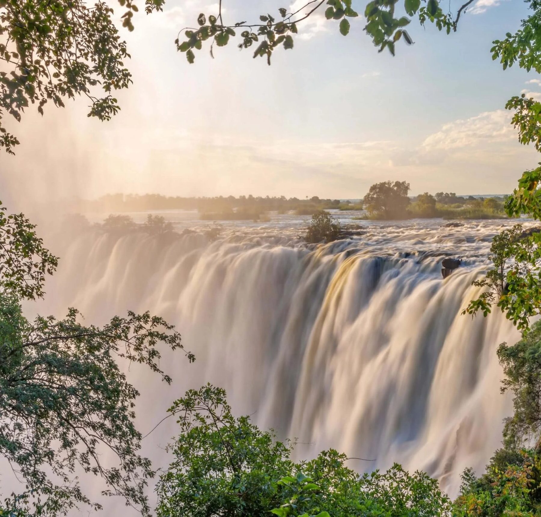 Les chutes Victoria comptent parmi les sept merveilles naturelles du monde. Ici, le fleuve Zambèze plonge de 108 mètres dans la gorge, formant le plus grand rideau d’eau au monde, un spectacle appelé localement Mosi-oa-Tunya (la fumée qui gronde). À cheval entre la Zambie et le Zimbabwe, les chutes Victoria offrent de superbes points de vue, des promenades dans des forêts tropicales luxuriantes, d’inoubliables safaris et des aventures riches en adrénaline sur le Zambèze.