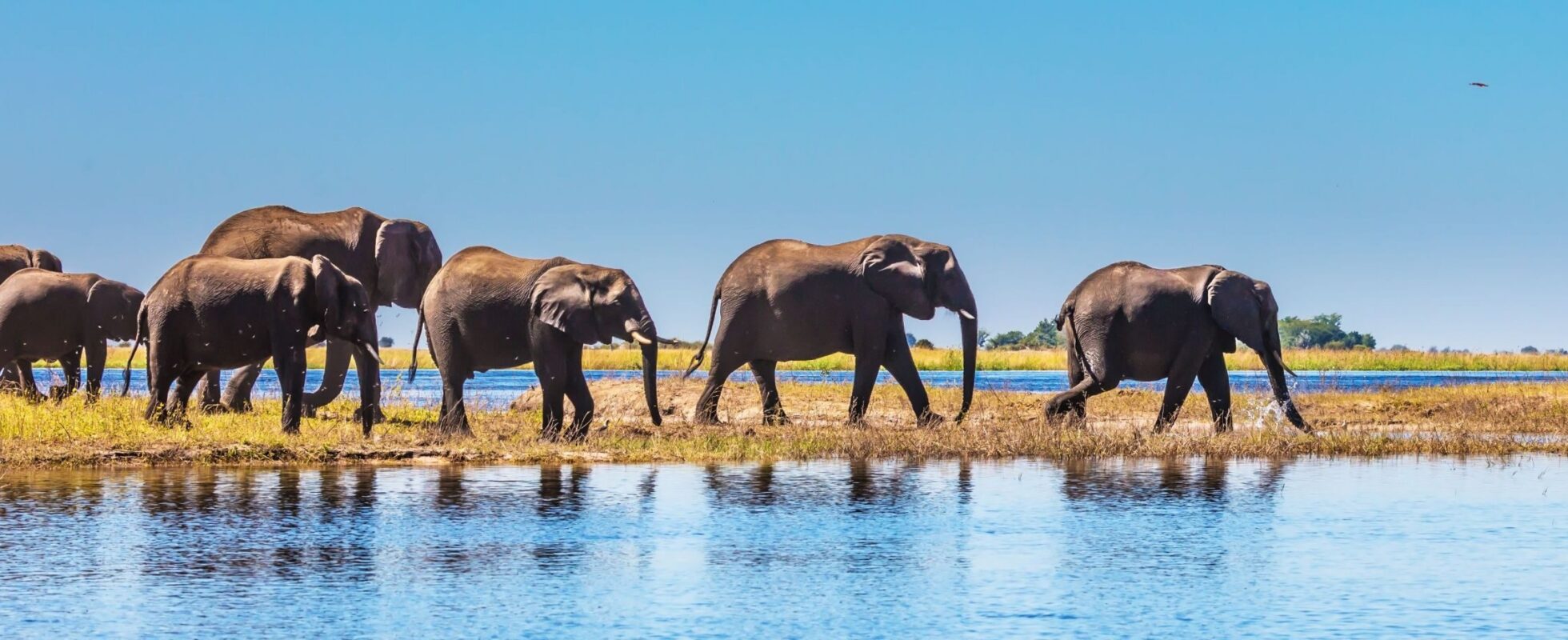 Créé en 1967, le premier parc national du Botswana abrite la plus grande concentration d’éléphants d’Afrique le long de la rivière Chobe, source de vie pour la région. Quatre écosystèmes distincts, allant des rives luxuriantes de la rivière Chobe aux zones humides reculées de Linyanti, créent une biodiversité inégalée : immenses troupeaux, félins impressionnants, lycaons et plus de 450 espèces d’oiseaux. Un bel équilibre entre accessibilité et immersion sauvage !