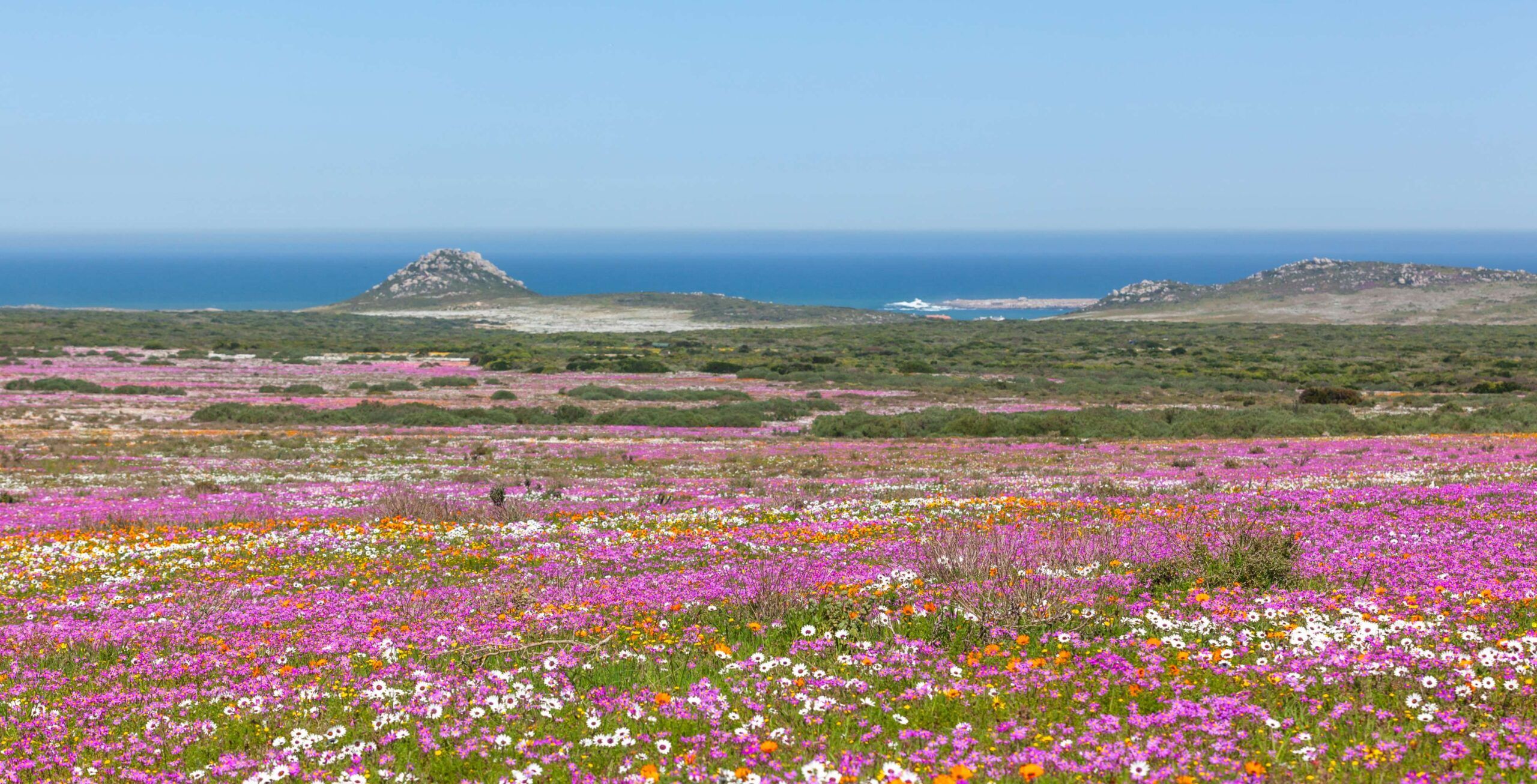 Imaginez un instant que vous êtes en train de marcher sur un champ de fleurs sauvages multicolores, tout en observant l’océan où d’immenses baleines fendent les flots de leur majestueuse queue. D’août à début octobre, le parc national de la Côte Ouest offre un spectacle naturel époustouflant : les baleines franches australes et les baleines à bosse peuvent être observées au large, tandis que sur la terre ferme, des mosaïques de fleurs sauvages recouvrent les vastes prairies. Il s’agit d’un phénomène rare que vous ne trouverez peut-être nulle part ailleurs sur terre !